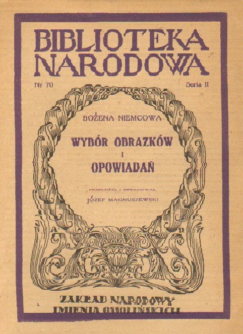 Wybór obrazków i opowiadań / Bożena Niemcowa ; przeł. [z czes.] i oprac. Józef Magnuszewski. - [Wyd. 2]. - Wrocław : Zakł. Nar. im. Ossolińskich, 1953 ([Kraków] : Krakowskie Zakł. Graficzne). - XXXV, [1], 205, [3] s. ; 17 cm.