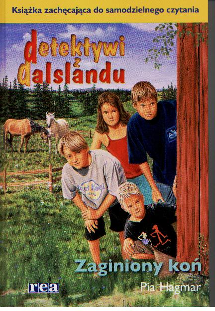 Tyt. oryg.: Den försvunna hästen, 2002, tyt. oryg. cyklu: Dalslandsdeckarna. U góry okł.: Książka zachęcająca do samodzielnego czytania.